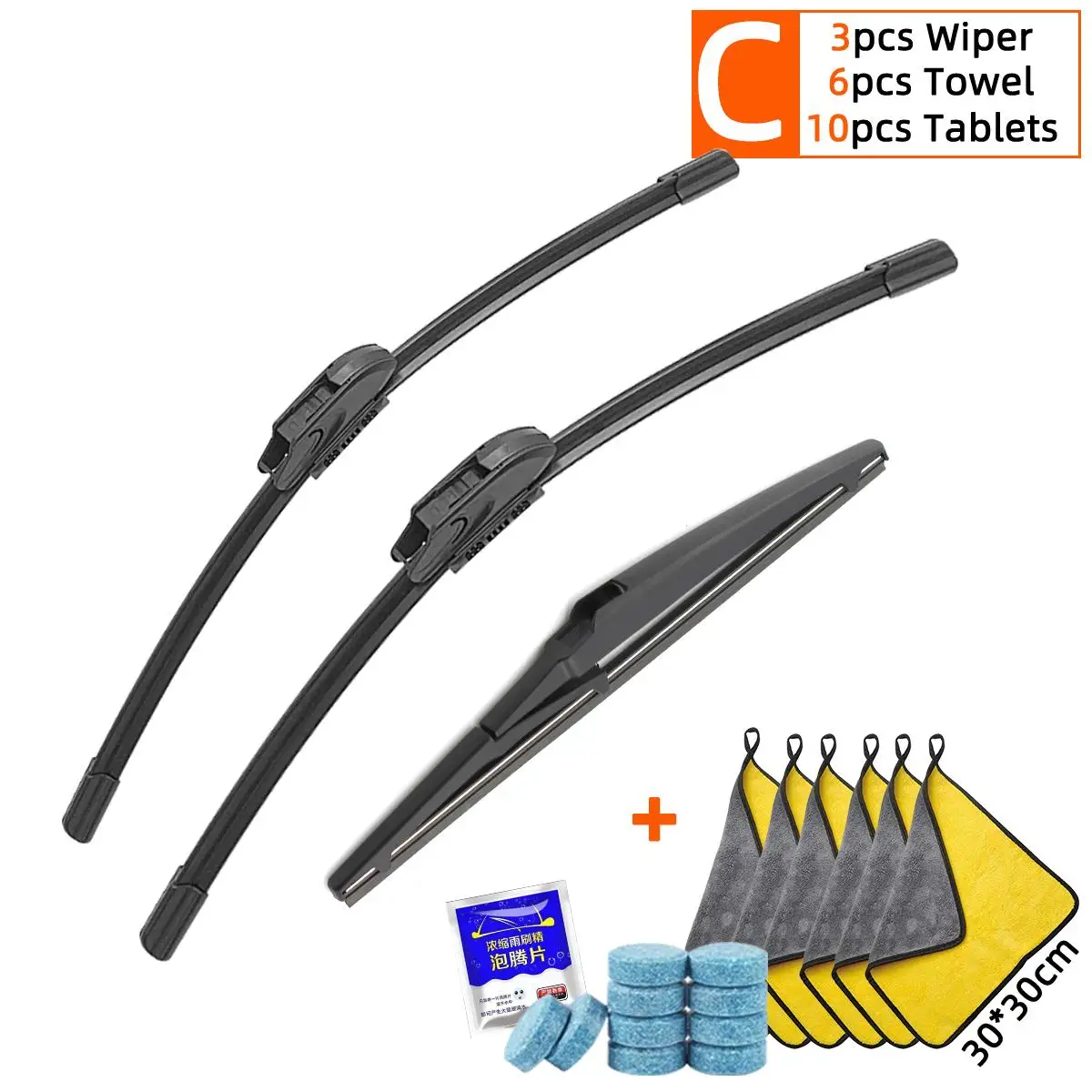 - C: 3 ممسحات + 6 مناشف + 10 أقراص غسيل